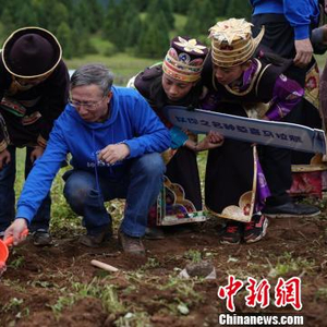 西藏农牧学院专家指导种植方法。 潘旭临 摄