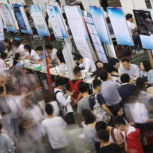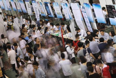 当日,来自全国各地的制造、科研、教育、交通运输等行业的近200家企事业单位走进南京航空航天大学2018暑期实习双选会。众多大学生前来争聘。 视觉中国供图