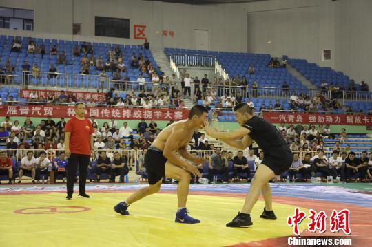 原标题:60名摔跤好手角逐山西传统“挠羊赛”