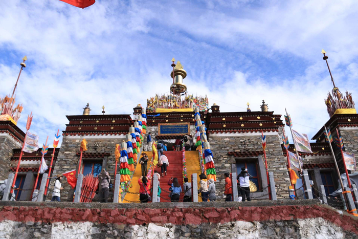 地处黄土高原和青藏高原分界线上的宗喀拉则,素有“青藏第一关”的美称,历史上曾是丝绸之路南路的要道之一。宗喀拉则占地面积6600平方米,建筑面积1700平方米,被誉为世界最大的山水文化殿堂,2016年被吉尼斯世界纪录认证为“最大拉则”。