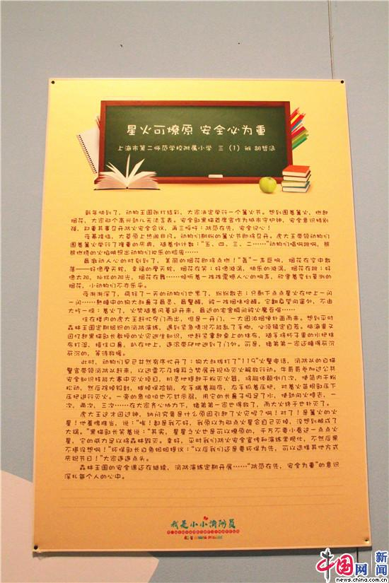 展出的消防作文作品 中国网 彭瑶 摄