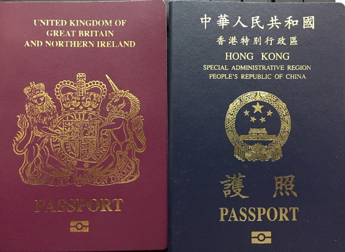 “英国国民(海外)护照”和中华人民共和国香港特别行政区护照。图自港媒