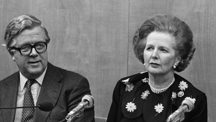 1984年12月,杰弗里•豪和撒切尔夫人在香港的一场新闻发布会上。图自港媒