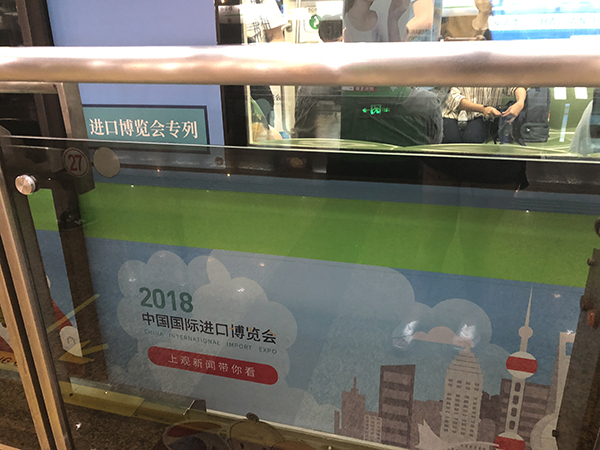 上海“进口博览会专列”正式发车啦!7月25日十点半左右,地铁2号线首发一列“进口博览会专列”地铁。