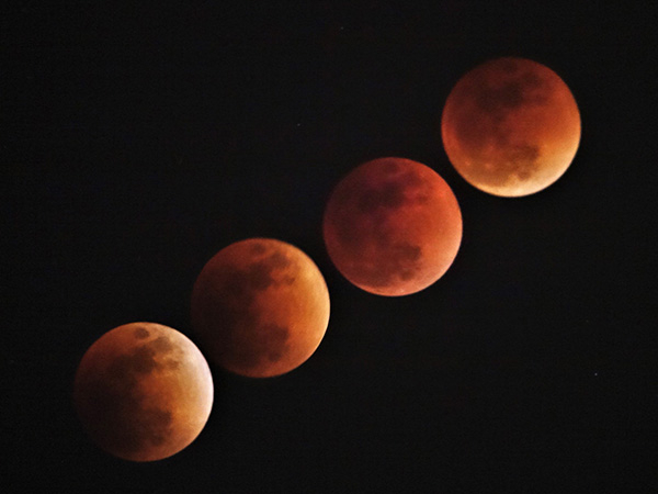 2018年1月31日的月全食,拍摄于北京,多重曝光。 视觉中国 资料图
