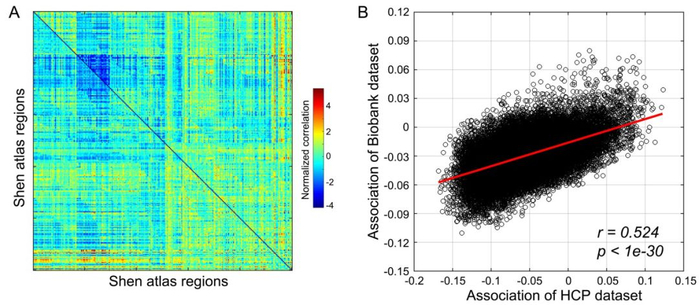 为了进一步走向“其所以然”,当下流行的脑功能影像数据成为了团队展开研究的着手处。“简单来说,我们通过对大样本脑影像数据的挖掘,找到了调制睡眠质量与抑郁症状之间关系的脑神经环路。”程炜介绍,通过整合国际两大脑影像数据库:美国人脑连接组计划(HCP)以及英国生物银行(UK Biobank),对近万名被试的影像行为大数据进行分析,团队发现,睡眠质量较差人群的外侧眶额皮层(负面情绪相关的脑功能区),楔叶(自我相关的脑功能区)以及背侧前额叶皮层(短时记忆相关的脑功能区)等脑区间的信号同步性(功能连接)显著升高;同时,这些神经环路在具有较高抑郁症打分的人群中也呈现显著升高的模式。正是这些同步性增强调制着抑郁与睡眠间的关系。对此,冯建峰对一种可能性进行了阐释,他指出,这些脑区间的连接增强可能使得这组人群长期处于某些负面情绪中,进而导致睡眠质量下降。