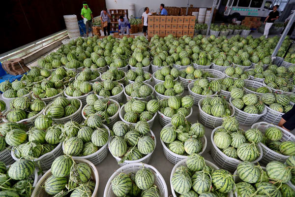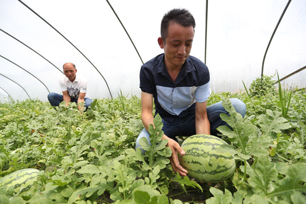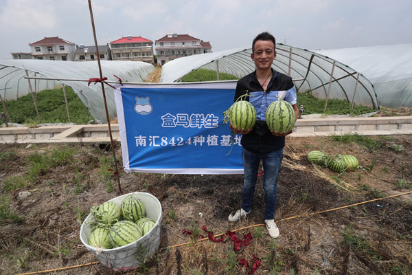 上海桃咏桃业专业合作社李春雷在挑西瓜