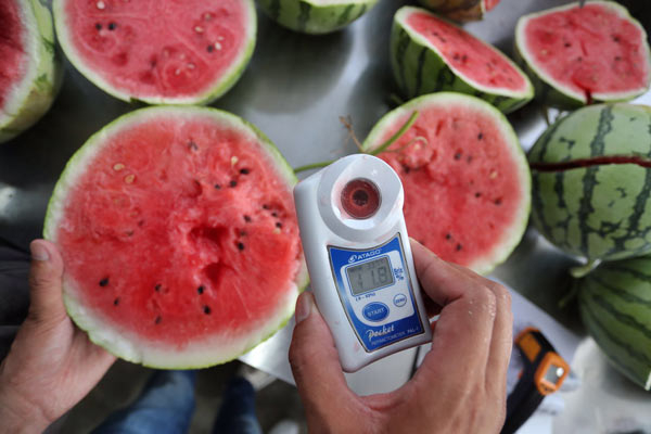 现场做西瓜的甜度测试