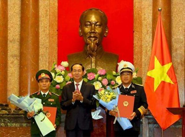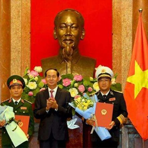 参考消息网7月27日报道 据外媒报道,2018年6月16日下午,越南国家主席办公厅举行了2名高级将领的晋衔仪式,其中越军副总长范红香晋升为上将,越海军司令范怀南晋升为海军副都督(中将),越国家主席陈大光、防长吴春历、副防长兼总长潘文江、总政副主任杜根等军政高层出席。仪式上,陈大光亲自颁发命令书,他高度评价了2名晋衔将领的工作成绩,希望他们继续为建设“革命化、正规化、精锐化、逐步现代化”的越南军队作出贡献。