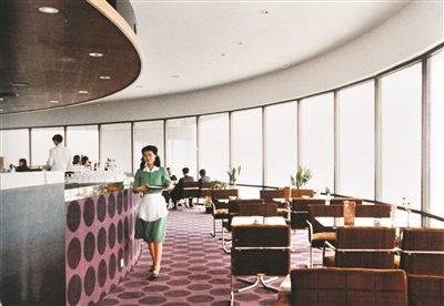 刚开业时,最被南京人津津乐道的是饭店的璇宫餐厅。当年对于普通人来说,无论是90美元一晚的价格,还是只使用外币兑换券的规定,都让很多人对金陵饭店 “望店兴叹”。当时在饭店栏杆外,每天都有好奇的市民仰头看大楼,不少人看得连帽子都掉了,居然说还没看见大楼的顶。而市民唯一能接触金陵饭店的途径就是买票参观璇宫。璇宫位于饭店36层,当时是国内第一个高层旋转餐厅,配备国内第一部高速电梯,从底部直达36层只需短短29秒,整个璇宫以1小时转一圈的速度缓慢旋转,坐在餐厅里可以俯瞰南京城全貌。尽管璇宫的参观时间限制为1小时,但排队的场面火爆了好多年,最壮观的时候队伍绵延排了几十米。