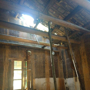 现在,蜡烛也少用了,因为担心着火。这套房子太过脆弱,一踩二层地板,脚下吱呀作响,有的地方已有裂痕。李春兰时不时请人帮忙拍屋顶的照片,“上面的漏洞比前几个月又大了,拍下来问问师傅,等父亲回来再找人修”。