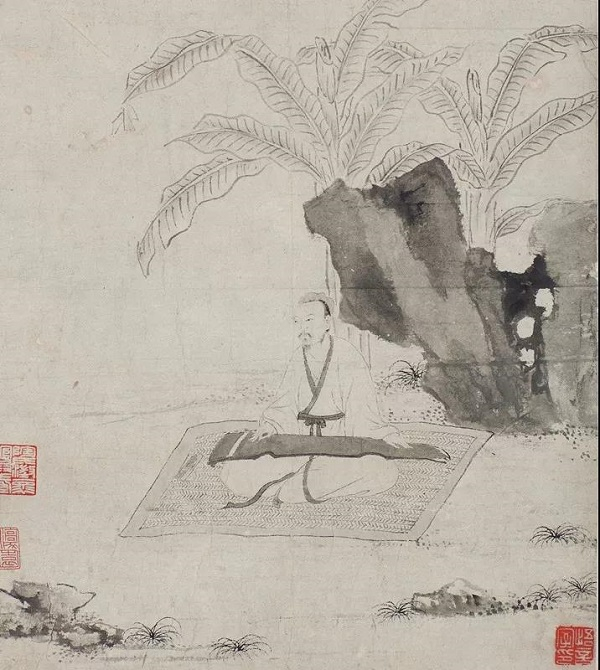 明 文徵明 《蕉石鸣琴图》(局部)无锡博物馆藏