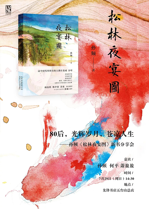 在《松林夜宴图》一书中,作者孙频更多关注的是个体在时代中的无奈与妥协,苍凉与挣扎,毁灭或重生。这个时代所有人都正在变成分母,她用酷烈、妖媚之笔,写下光辉岁月里的苍凉人生故事。本周日,孙频携新作《松林夜宴图》来到先锋书店,与学者何平、萧盈盈对谈,分享小说创作中的心路历程。