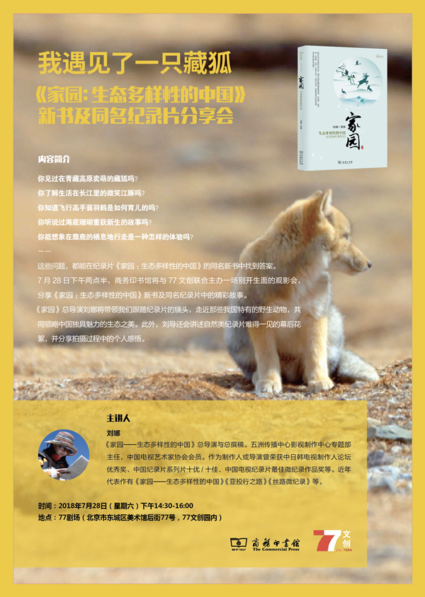 7月28日下午,商务印书馆将与77文创园联合主办一场别开生面的观影会,分享《家园:生态多样性的中国》新书及同名纪录片中的精彩故事。