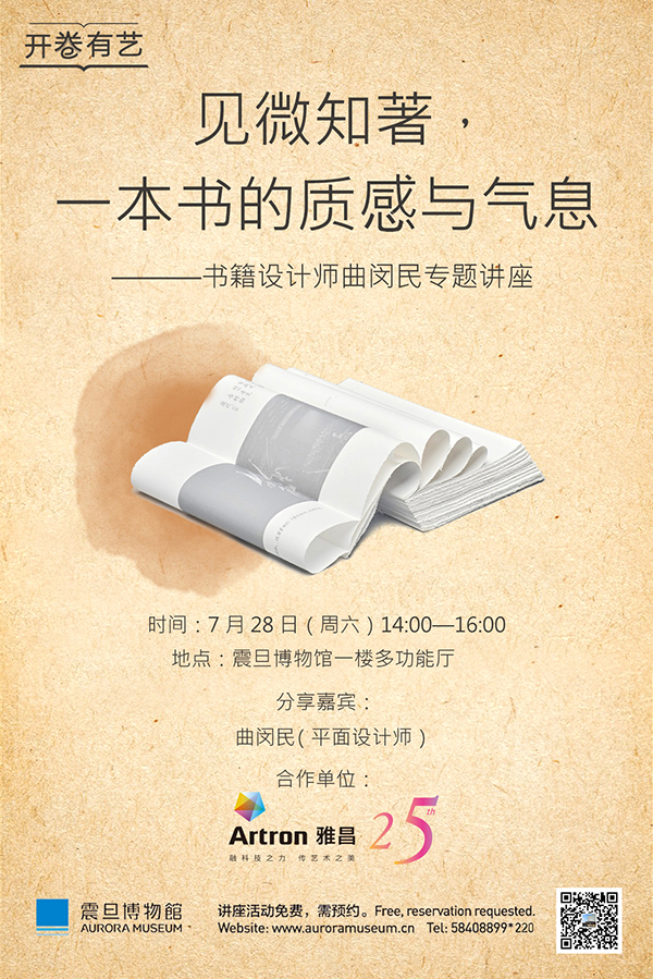 七月的开卷有“艺”分享会,书籍设计师曲闵民来到震旦博物馆,将和大家面对面分享代表作品的成书过程,以及作品背后的故事。