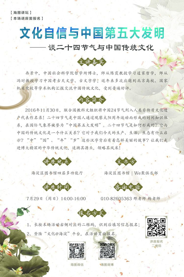 地点:海淀区丹棱街16号海兴大厦C座海淀区图书馆四层多功能厅
