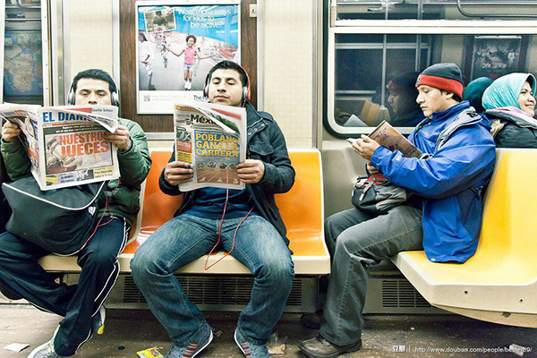 很多人说起在地铁上读书,第一反应是“首先得有座”。在拍“地铁上的读书人”之前,我也这样认为。事实上,只要作品足够经典,无论有座与否,读者都会在通勤路上拥挤的环境中找到读它们的理由。“越是读平庸的大众书的人,越不会在地铁里争分夺秒。越是真爱书的才会在地铁里读”,在跟一位朋友聊起地铁阅读的话题时,她这样说。