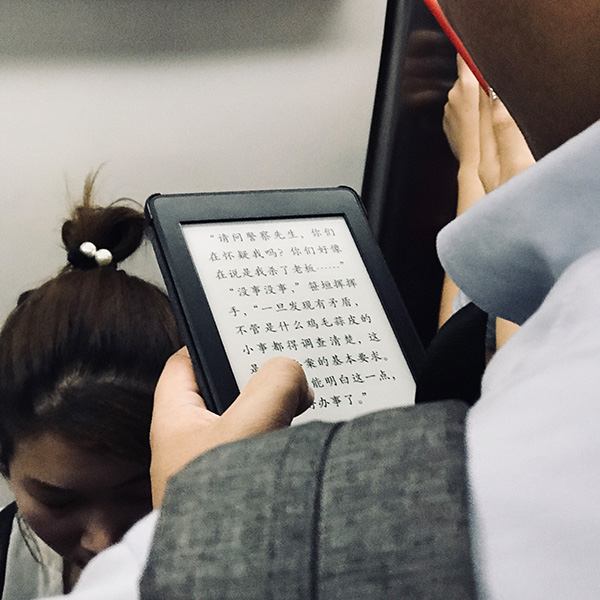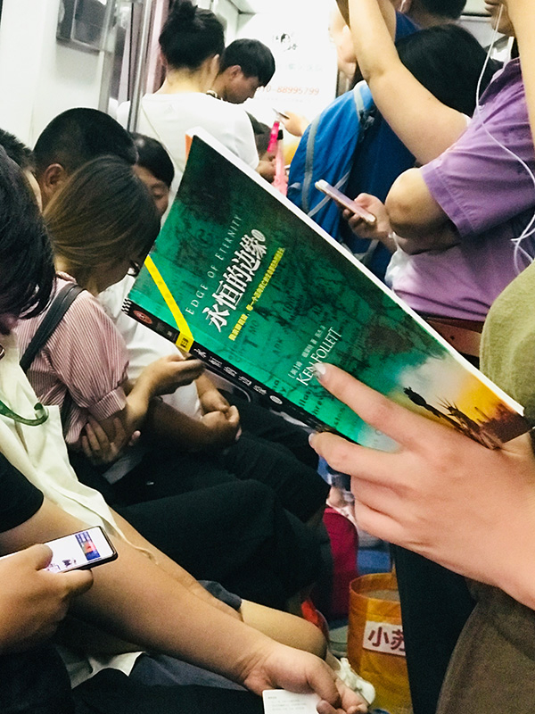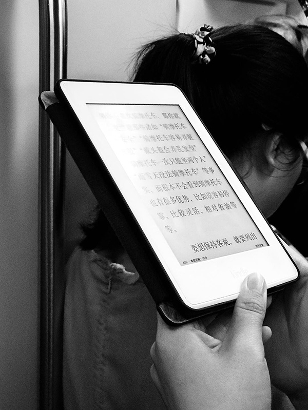 北京地铁上读《禅与摩托车维修艺术》kindle版的读者