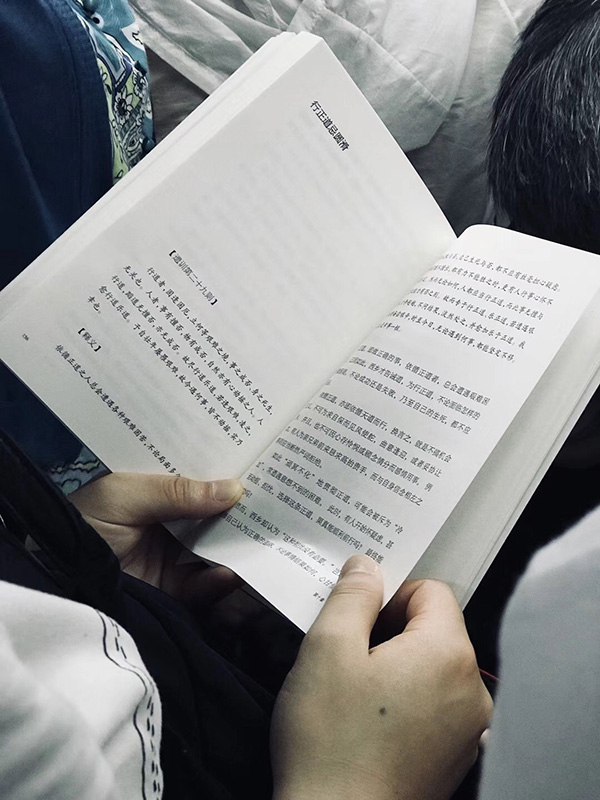 我还记得第一次在地铁上拍到那位俊朗的男青年读这书的情景:他依靠在车厢连接部,边读书边拿笔认真做着笔记。本以为他在复习备考,但当我透过手机镜头拍下的照片看到书中文字,我知道,他在学习“爱”。