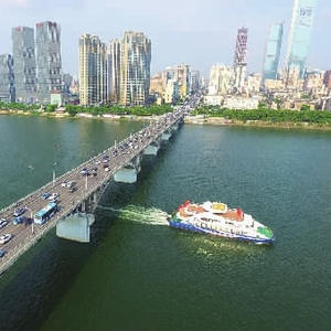 橘子洲大桥是长沙首座横跨湘江的大桥,东接五一大道,西接岳麓山景区、大学城、西湖文化园及梅溪湖,全长1250m,全桥21跨,其中主桥17跨,自1972年建成通车后便成为长沙最繁忙的过江通道。去年底,该大桥被列为第三批长沙市历史建筑。