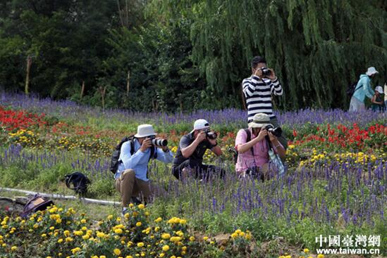 中国台湾网7月29日新疆伊犁讯(记者 王怡然) 7月26日,“你好新疆——塞外江南大轰趴”采风团的两岸摄影和新媒体达人参观走访中国美丽田园解忧公主薰衣草园。