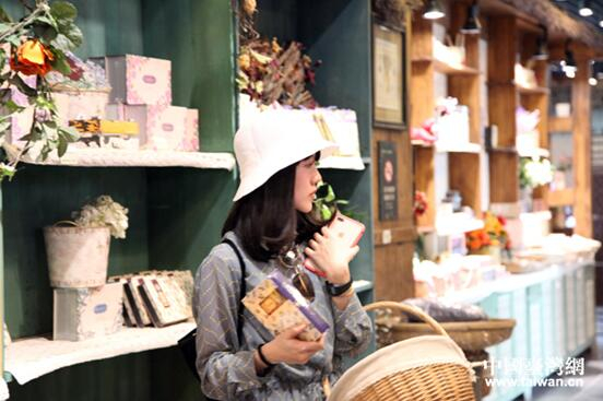 90后台湾编剧李诗淇挑选新疆伊犁出产的熏衣草护肤产品。(中国台湾网 王怡然 摄)