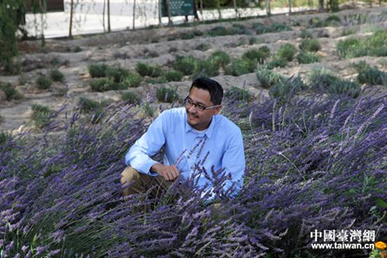 帅大叔、台湾旅游摄影达人陈耀恩在薰衣草田留影。(中国台湾网 王怡然 摄)