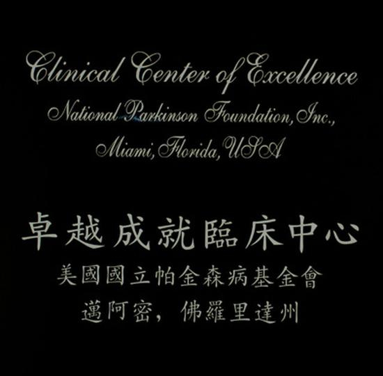 ▲1999年美国国立帕金森基金会授予北京功能神经外科研究所“卓越成就临床中心”称号。