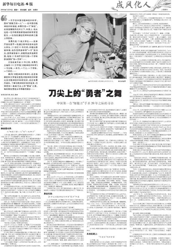 题目:刀尖上的“勇者”之舞——中国第一台“细胞刀”手术20年之际的寻访