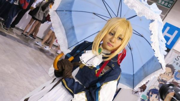 装扮成维奥莉特的袁小姐,在会场内成为不少男女老幼争相拍照的对象,她来者不拒,乐于与路人自拍留念。