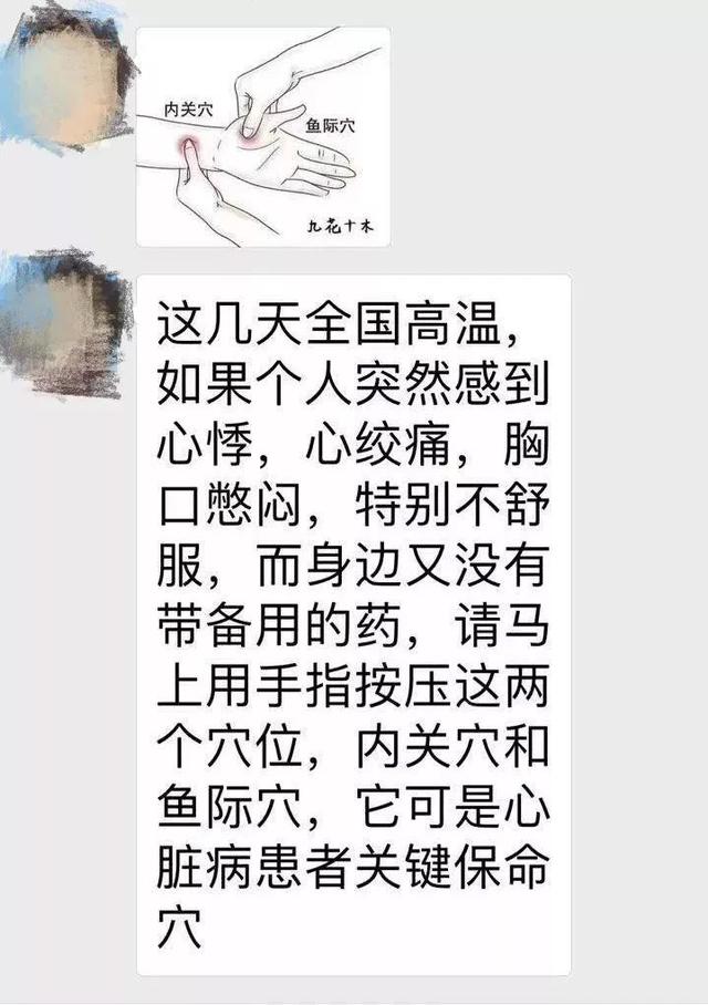 最近也有街坊在朋友圈互相提醒:如果突然感到心悸,心绞痛,胸口憋闷,特别不舒服,而身边又没有带备用药,请马上用手指按压这两个穴位:内关穴和鱼际穴,它可是心脏病患者关键保命穴。