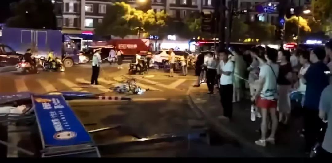 现场一个目击大姐说:“当时小轿车开车的声音很响,我后面一个女的在骂,要死了,车开那么快。我一回头,就听到砰的一声,烟都冒起来了。十字路口的两个遮阳棚都撞没了。我走到这里,现场太可怕了,不敢看啊。”