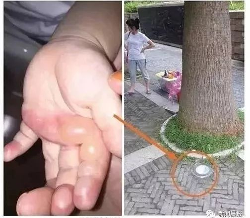 小区里的扶梯、石凳等,在烈日的暴晒下也会温度急剧上升,要谨防孩子烫伤。