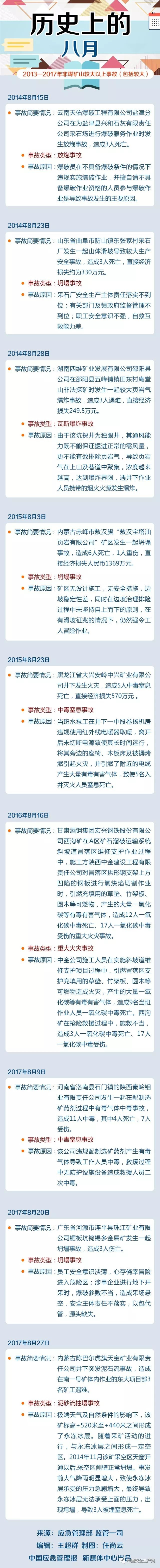 8月份危化行业爆炸事故和中毒事故多发,近年来8月份至少发生15起爆炸事故,6起中毒事故。
