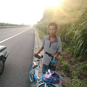 蒋健说,他在江苏无锡送外卖,觉得生活压力大,加上思乡心切,蒋健决定回湖南老家。由于没钱买火车票,蒋健找来一辆共享单车,准备骑车回家。只知道大概方向的蒋健沿着省道骑了20多天,到达望江县,随后上了高速。