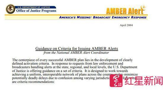 美国司法部官网上此前披露的文件显示,触发安珀警报需严格满足几条规定 图据美国司法部官网