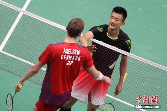 8月3日,2018年羽毛球世锦赛在南京继续进行,男单赛会8号种子、中国队的谌龙以2-0击败赛会头号种子、丹麦的安赛龙,成功晋级。中新社记者 泱波 摄