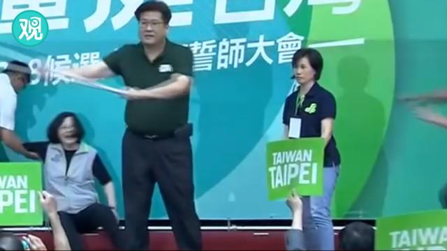 视频:造势现场嗨过头 蔡英文台上摔跤
