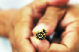 之后我们又随尹先生参观了旧馆,让人颇感意外的是旧馆前的树木。尹先生拿起一个树枝,让我们看它的横截面。原来树枝的横截面呈现五角星的模样。据尹先生介绍,在烈士纪念馆旧馆门口大树的树枝在九月或十月会脱落,经过风吹日晒,在树枝内部形成一颗“五角星”,此星意味着我们心中的“星”。红星闪耀,党在心中。