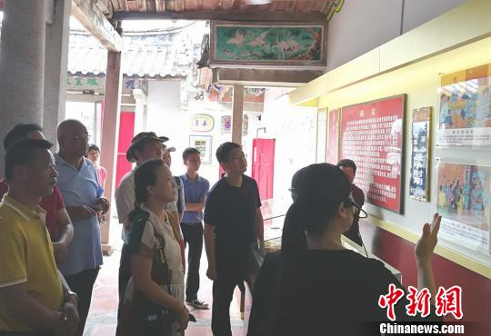 彭湃孙女彭伊娜(中),古大存之子古延贤(左二),中新社广东分社党委书记、社长张见悦(右二)等人参观普宁县苏维埃政府办公旧址。 程景伟 摄