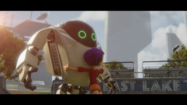 《未来机器城》电影剧照:小麦和机器人7723拥抱
