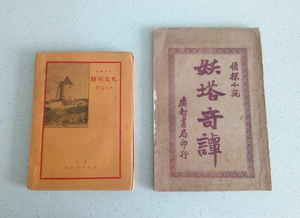 《磨坊文扎》(成绍宗、张人权译),1927年8月创造社初版本; 《妖塔奇谭》(无歆羡斋译)光绪三十二年(1906年)广智书局初版本。