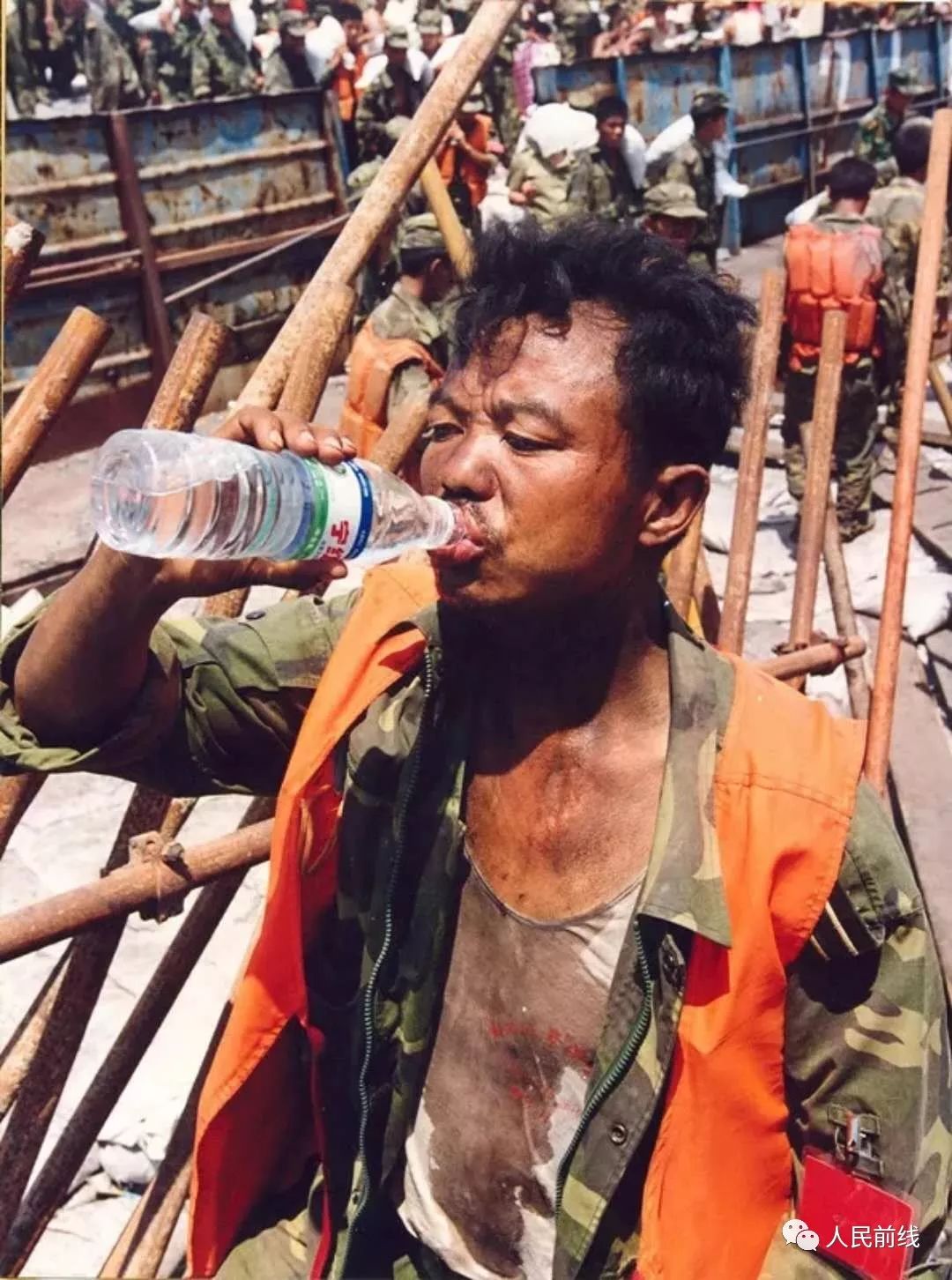 ▲那一天,成功封堵决口,热烈欢呼。