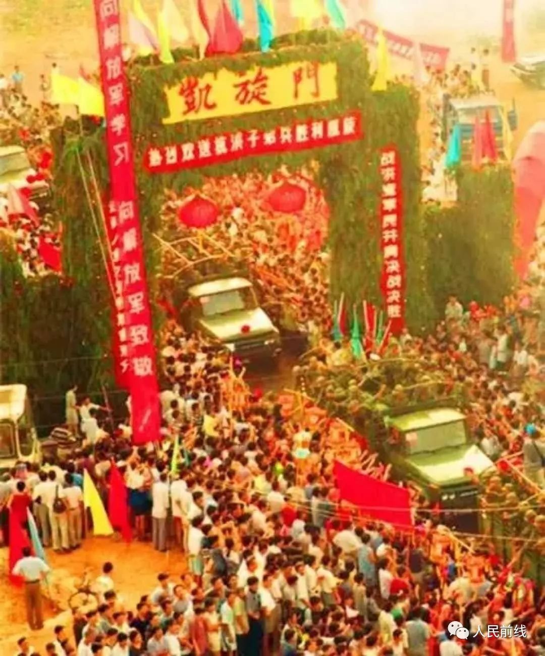 在凯旋门下挥泪送别子弟兵