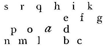 另外,关于这幅壁画,格伦威德尔(Albert Grünwedel)撰写的第三次德国队报告书中也有述及,此处想引用相关的部分。报告书用a、b、c 记号表示画面的构成,如下图所示,并做了如下的解说。 4