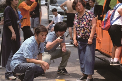 而在江宁的甘泉湖景区内,记者发现著名作家赵本夫也出现在了片场。原来,他正是导演周稷之的外公。他还应邀在这部短片中客串出演了一名退休缉毒警察。外孙给外公说戏,可谓一道难得的风景!记者看到,年届70的赵本夫先生和饰演“小树”的南京小演员刘岳泽,在现场正午的高温天气下,虽被要求多机位重复拍摄,仍一丝不苟地完成了任务。赵本夫的小说被誉为“最具人类善意”,而在这部短片片尾,他这位“缉毒警察”的出场,可以说是“小树长大”这一主题的善意接续,并由此为影片增添了一抹暖意和亮色。