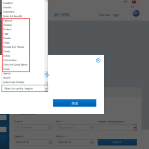 [观察者网综合报道]美国航空(American Airlines)系最后四家未能在7月25日前按民航局要求完成涉港澳台信息整改的公司之一。8月11日,该公司官方网站上查询机场“国家/地区”一栏已不见“台湾”选项。