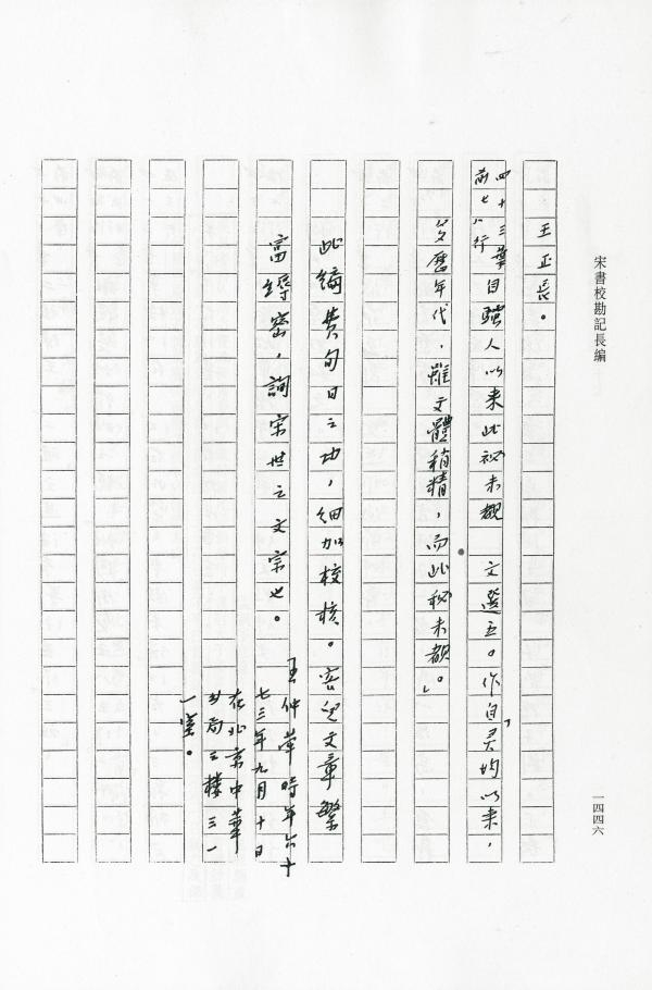 丁福林:王仲荦先生点校本《宋书》,校勘精审,考辨广证博引,在吸收前人研究成果的基础上,又多所创见,实他人难以企及,可说是迄今最为完善之精本。《宋书》的点校自1962年始,至1974年正式出版,历时凡十二年。2009年3月,中华书局将王先生遗稿《宋书校勘记长编》列入“二十四校订研究丛刊”影印发行,这部手稿,是先生十二年《宋书》点校心血的结晶,也是先生从事《宋书》点校工作的原始记录,展现了他严谨学风和过人的学识素养。《长编》以百衲本为工作本,依原文顺序逐卷逐条详细记录了他在版本对校、他校及理校过程中所发现的有关问题,并参考前人相关研究成果,提出校改意见。根据统计,《长编》出示条目共达九千一百余条之多,用力之勤,前所未有。乃是《宋书》整理史上集大成之作。当然,智者千虑,百密一疏,加上当时检索条件的限制和人手的缺乏,点校本中极个别地方出现一些问题,是可以理解的。但这并不会掩盖点校本《宋书》和点校长编的重大成功。可以毫不夸张地说,如果没有王仲荦先生开创性的工作,就无法进行今天对《宋书》点校的修订。