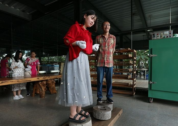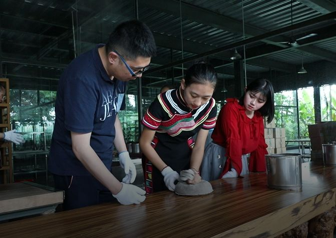 除了享受热腾腾的普洱茶,你还可以在这里亲手为自己做一款手工普洱茶留作纪念——