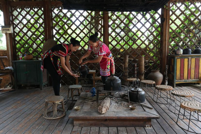景迈山上有一户“景迈人家”饭店,据传这家人是景迈山上的第一户人家,因此称为“景迈人家”,这里可以吃到用熟茶汤煮的排骨和炸茶叶等一系列融茶入菜的美食,还能喝到当地独特的“烤茶”,值得一去。